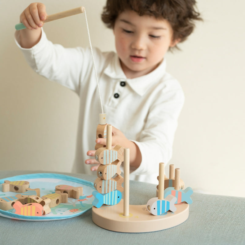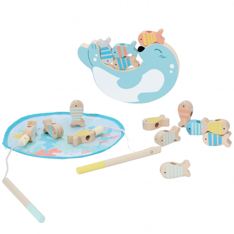 - Użyj magnetycznych wędek, aby złapać rybki z maty imitującej jeziorko. To doskonała okazja, by poćwiczyć precyzję i koordynację ruchów- Każda rybka ma kolorowy wzór, co pomaga dzieciom rozpoznawać kolory, a także wzmacnia ich zdolności motoryczne.- Doskonała gra zarówno solo, jak i z przyjaciółmi – kto złapie więcej rybek?