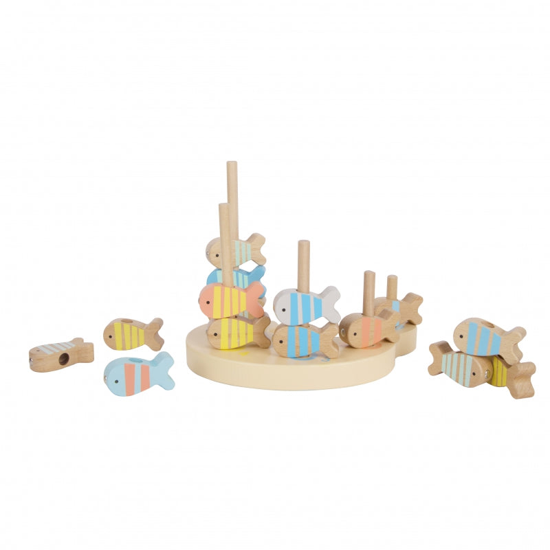 - Umieść złapane rybki na drewnianych palikach według koloru, wzoru lub liczby otworów- Tablica do sortowania uczy dzieci rozpoznawania kolorów, liczb oraz rozwija umiejętności logicznego myślenia- Możesz tworzyć różne zadania i wyzwania – idealne do nauki poprzez zabawę