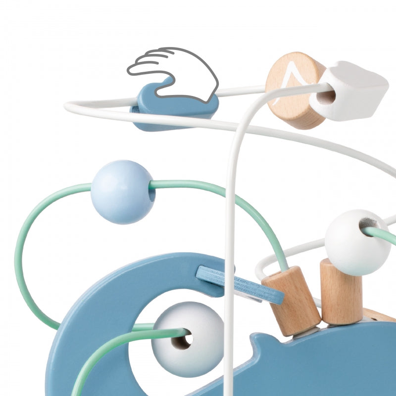 Het Zeeleven speelbord van CLASSIC WORLD is een prachtig, modern, pastelkleurig speelgoed dat de fijne motoriek van kinderen stimuleert en hen tegelijkertijd laat kennismaken met de prachtige wereld van het leven in de oceaan. Kinderen kunnen de vogelvormige bubbels en ballen rond de walvis bewegen, boven of onder de zee. De babywalvis zwemt rond zijn moeder en navigeert tussen zeewier, vissen en meer. Dit houten verweven doolhof is een geweldig sensorisch speelgoed dat kinderen helpt hun fijne motoriek te ontwikkelen. Door de kralen door de gebogen buizen te weven, moeten kinderen de juiste bewegingen maken om te slagen. Op deze manier leren kinderen de juiste bewegingen en ontwikkelen ze tegelijkertijd behendigheid en precisie. Het speelgoed heeft delicate houten elementen zonder scherpe randen. U hoeft zich geen zorgen te maken over de veiligheid van uw kind.