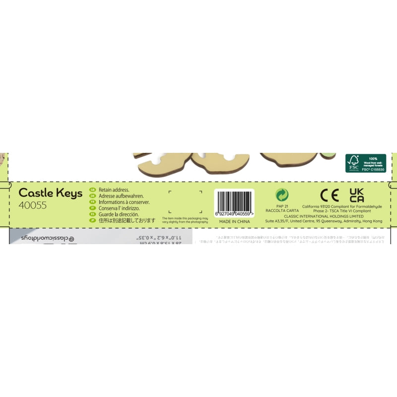 De sleutels kunnen ook opgeborgen worden in de houten plank, die speciaal ontworpen is met een vakje voor elke sleutel. Deze speelgoedset helpt de ontwikkeling van de oog-handcoördinatie, kleurherkenning en fijne motoriek, terwijl het grafische inzicht van je kind gestimuleerd wordt.