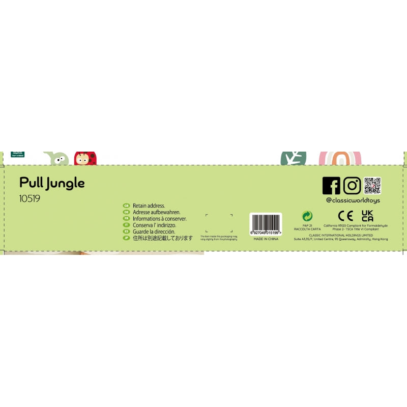 De houten rupsentrein van Classic World is een speelgoed in prachtige pastelkleuren dat niet alleen een lust voor het oog is, maar ook de verbeelding, coördinatie en behendigheid ontwikkelt. Het junglethema introduceert kinderen in de natuur, leert hen over dieren, planten en insecten, en ontwikkelt hun interesse in de natuur en het milieubewustzijn. Kinderen kunnen deze elementen naar eigen inzicht combineren, wat zorgt voor een boeiende en levendige jungle-geïnspireerde ervaring. Als u prioriteit geeft aan de ontwikkeling van uw kind, moet u weten dat de rupsentrein de ontwikkeling van de fijne motoriek ondersteunt – fijne motoriek wordt gedefinieerd als vinger- en handbewegingen. Deze bewegingen maken gebruik van een klein lichaamsdeel, maar vereisen concentratie en focus op de uitgevoerde activiteit. Het speelgoed is gemaakt van hoogwaardig hout. Een ander voordeel is het glad geschuurde, prettig aanvoelende oppervlak, wat veilig spelen voor kinderen garandeert. De rupsentrein heeft ook een trekkoordfunctie – uw kind zal zich zeker niet vervelen!