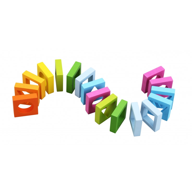 Kolorowa układanka geometryczna pomoże dziecku nauczyć się różnych kolorów i kształtów. Zabawka pomaga zrozumieć zależności między wielkością poszczególnych klocków. Klocki mogą również służyć do budowania różnych konstrukcji. Charakterystyka: