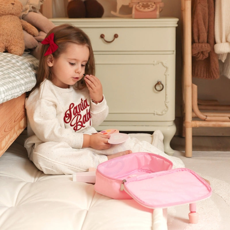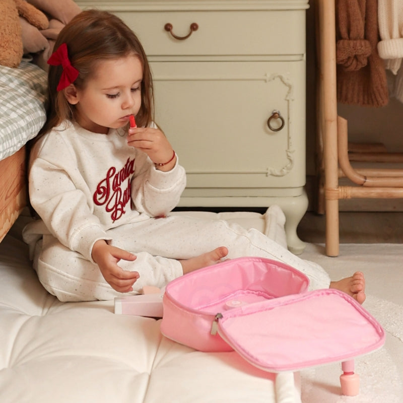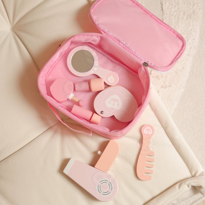 Kosmetyczka z akcesoriami do makijażu od marki Classic World to przeuroczy zestaw kosmetyczny który jest spełnieniem marzeń każdej małej stylowej damy! W eleganckiej kosmetyczce znajdzie wszystko, czego potrzeba, by poczuć się jak prawdziwa gwiazda. Drewniane akcesoria, które nie tylko wyglądają jak prawdziwe, ale są także całkowicie bezpieczne dla dzieci, przeniosą ją w świat kreatywnej zabawy. Każdy element, od lusterka po suszarkę, zaprojektowano z dbałością o najmniejszy szczegół - Zabawa w stylizację rozwija zdolności manualne, pomysłowość i buduje pewność siebie!