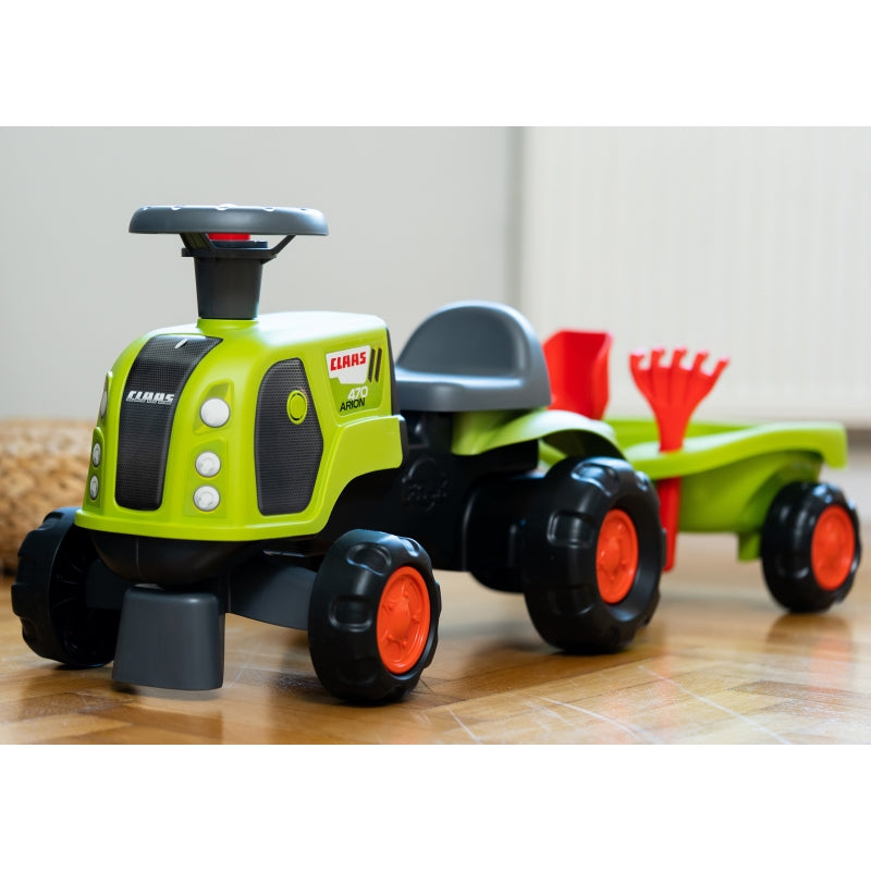FALK Jeździk Claas 470 Arion Zielony z Przyczepką + Zestaw do piasku