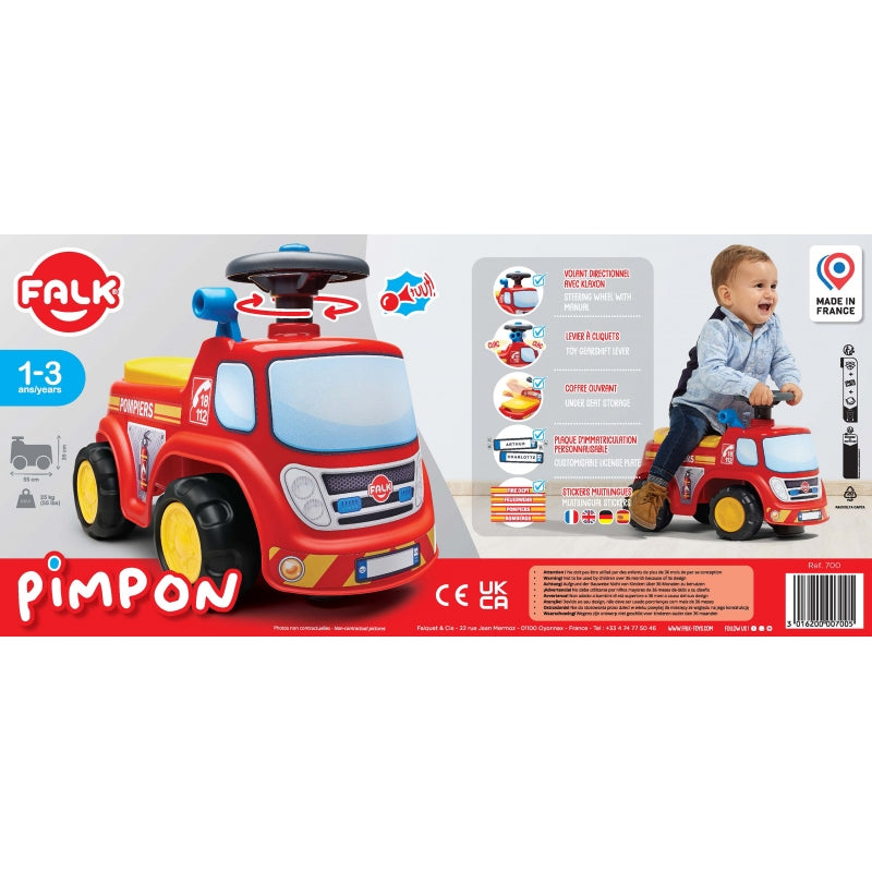 Ciężarówka strażacka Fireman marki FALK to jeździk który zachwyci Twoje dziecko. Dzięki kierownicy z klaksonem twój maluch będzie mógł łatwo manewrować rozwijając swoje umiejętności motoryczne Ten jeździk dziecięcy zawiera praktyczny schowek znajdujący się pod siedziskiem. Ma on również tablicę rejestracyjną, na której można nadać nazwę jeździkowi!