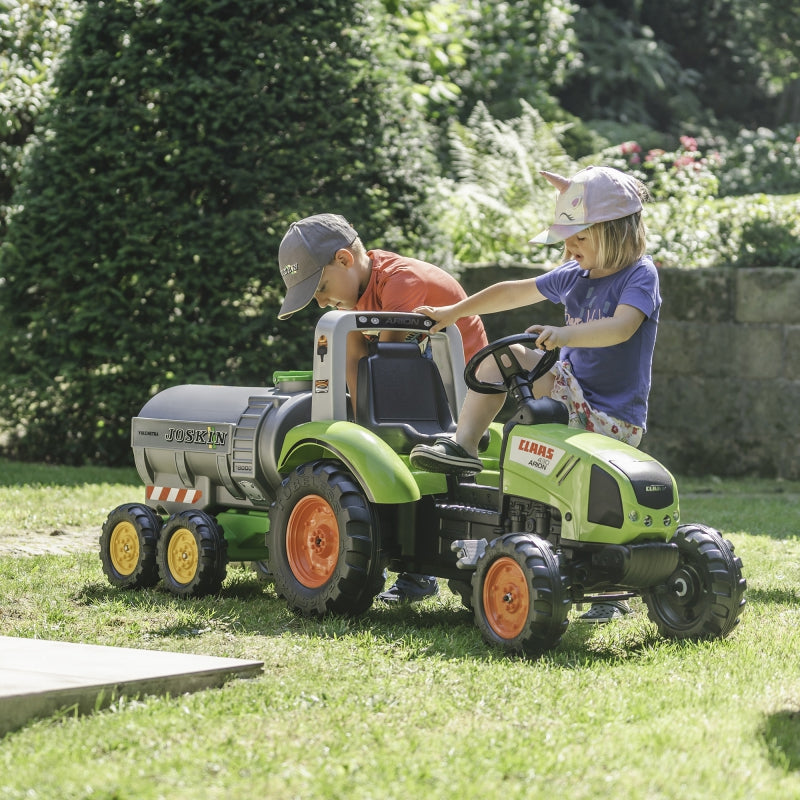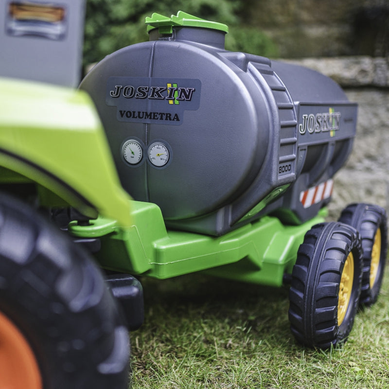 Przyczepa firmy Falk została wyprodukowana we Francji z wysokiej jakości materiału na licencji producenta maszyn rolniczych Joskin. Baw się nalewając wody do dużego zbiornika a następnie podlewaj uprawy. Cysterna Joskin pasuje do wszystkich traktorów FALK dla dzieci w wieku od 3 lat. Koła przyczepy zostały wykonane z wysokiej jakości plastiku.