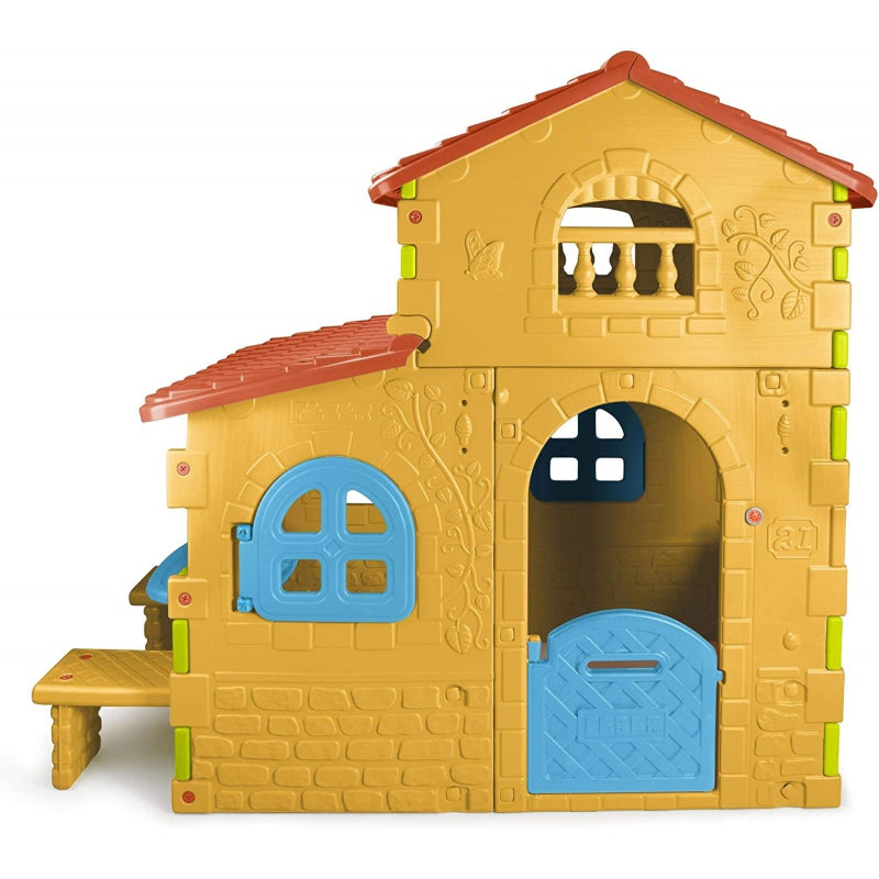 Dom Super Villa marki Feber jest największym i najbardziej zabawnym domkiem, z dużą przestrzenią wewnątrz do zabawy w dwóch strefach wysokości. Drzwi wejściowe wyposażone są w otwór, który pełni funkcję skrzynki na listy, dodatkowo przy drzwiach posiada dzwonek. Domek na ścianach ma wzory cegieł oraz kwiatków. W domku znajduje się także stolik oraz dwie ławeczki do siedzenia. Całość wykonana jest z barwnego tworzywa odpornego na promieniowanie słoneczne i temperaturę. Domek Super Villa firmy Feber jest niezwykle prosty w montażu.