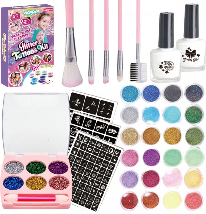 Glitter tattoo set voor kinderen - Inclusief glitters en sjablonen