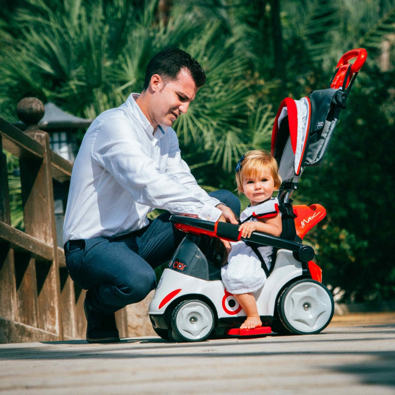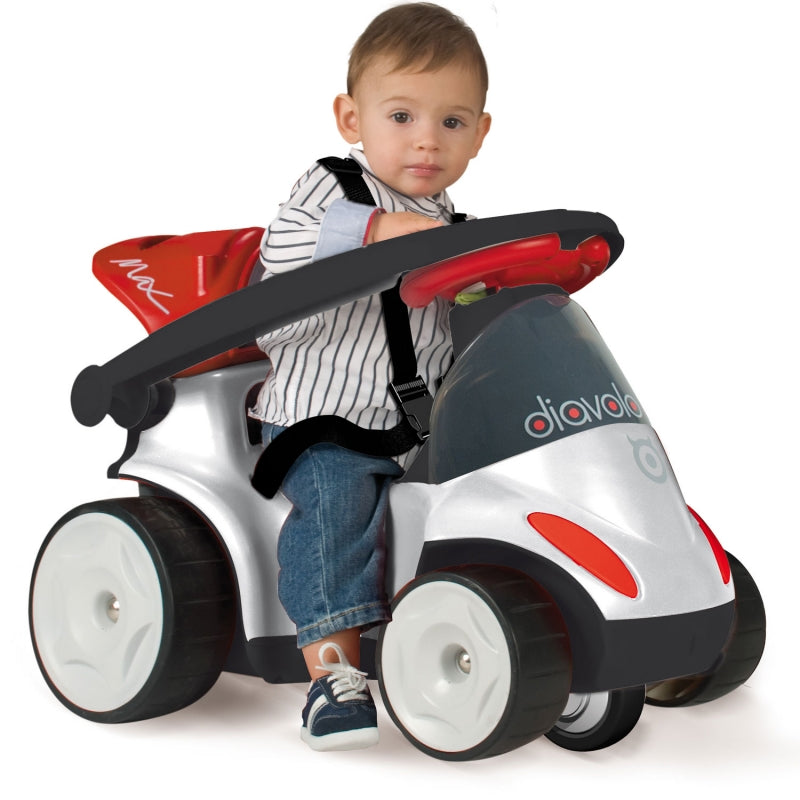 - pojazd ma: składane podnóżki, schowek na skarby maluszka i pasy 5-cio punktowe,
