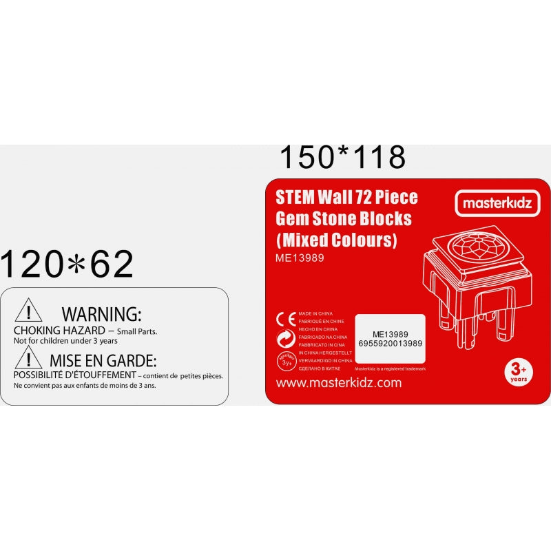 Komplet 72 diamentowych klocków do ozdabiania tablic naukowo-kreatywnych marki Masterkidz. Klocki występują w 6 różnych kolorach, po 12 sztuk z każdego rodzaju. Umieszczone są w specjalnych płytkach z kołkami, które pozwalają na bardzo łatwy i szybki montaż, lub demontaż z tablicy.