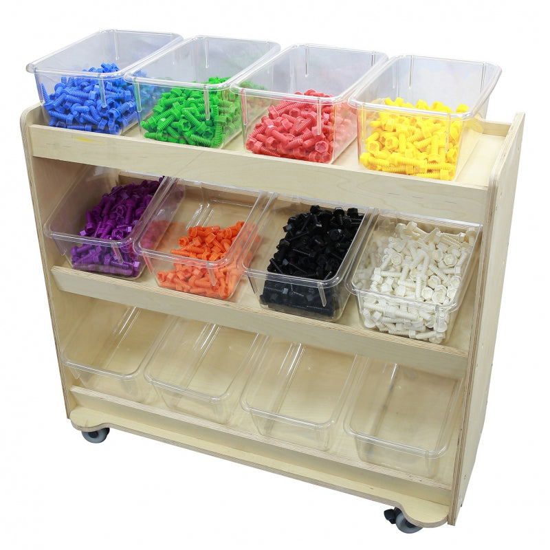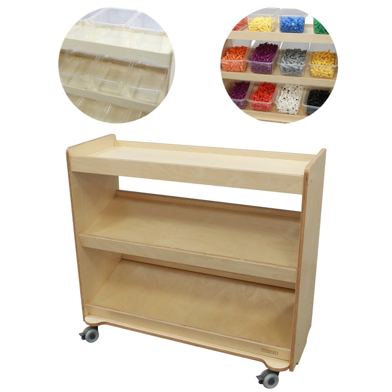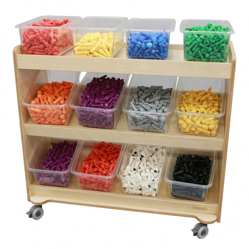 MASTERKIDZ Drewniany Regał na kółkach z Półkami to solidny mebel przedszkolny wykonany z najlepszego gatunku drewna. Przedmiot jest przeznaczony do przechowywania różnych akcesoriów i pomocy naukowych w przedszkolu. Specjalne półki na szafce gwarantują porządek i łatwy dostęp. Dużym atutem są również kółka. Dzięki nim szafka jest mobilna i z łatwością można dopasować ją do każdego wnętrza.
