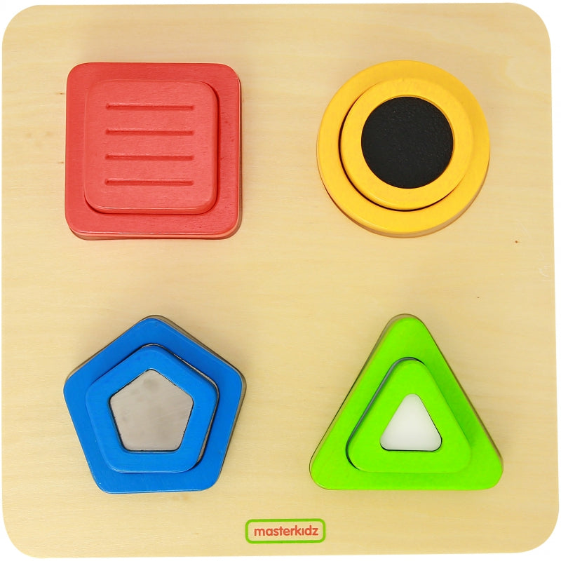 MASTERKIDZ Drewniany Sorter Kształtów Materiałów Faktury Powierzchni Montessori