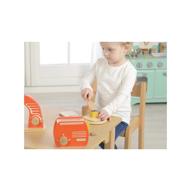 Piękny, drewniany toster z akcesoriami renomowanej marki Masterkidz spełnia wszystkie wymogi jakości i bezpieczeństwa oraz jest wyjątkowo lubiany przez dzieci. Takie połączenie sprawia, że zabawka jest idealną propozycją dla przedszkoli lub sal zabaw. Dbałość zarówno o jakość wykonania, jak i estetykę oraz niemal nieograniczona możliwość rozbudowania zestawu to wyjątkowy atut tego produktu.