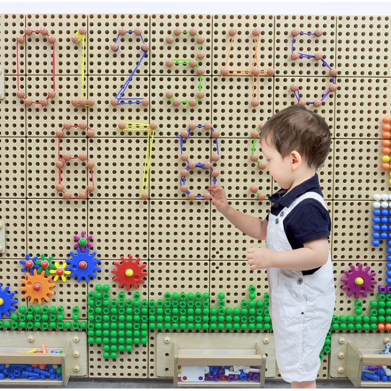 Het vrijstaande STEM-bord, in de vorm van een huis, is een perfecte introductie tot de wereld van STEM. Dit prachtige educatieve en wetenschappelijke bord is gemakkelijk te verplaatsen dankzij de wielen. Dankzij dit bord ontdekken kinderen de wereld van mechanismen, natuurkunde, wiskunde en vele andere interessante dingen. Speciale pinnen en kleurrijke elementen stellen uw kind in staat om unieke structuren en prachtige patronen te creëren.