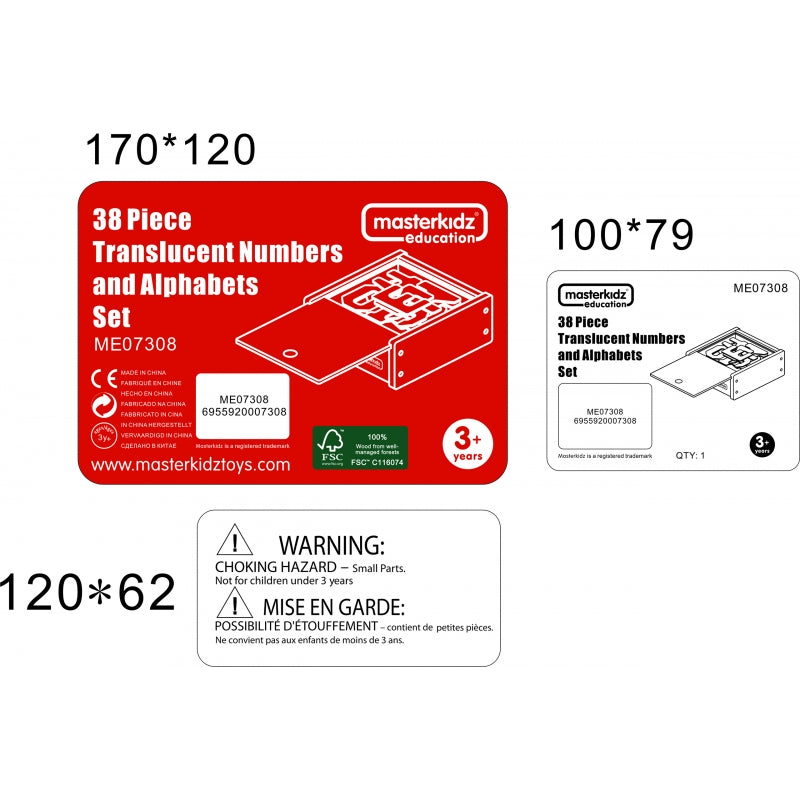 - Zestaw zawiera 38 przezroczystych, kolorowych liter i cyfr