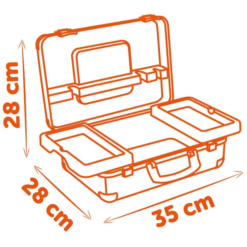 Walizka z narzędziami Black & Decker jest kreatywnym zestawem dla dzieci, które lubią budować i majsterkować. W zestawie śrubokręt, klucze i śrubki umożliwiają urozmaiconą zabawę. Zabawki są dopasowane do małych rączek dziecka, by maluchom budowało się intuicyjnie i komfortowo. Zabawa zestawem Black & Decker wspiera motoryczny rozwój dziecka. Walizka jest poręczna i łatwa w przenoszeniu. Wewnątrz znajdzie się miejsce na wszystkie akcesoria.