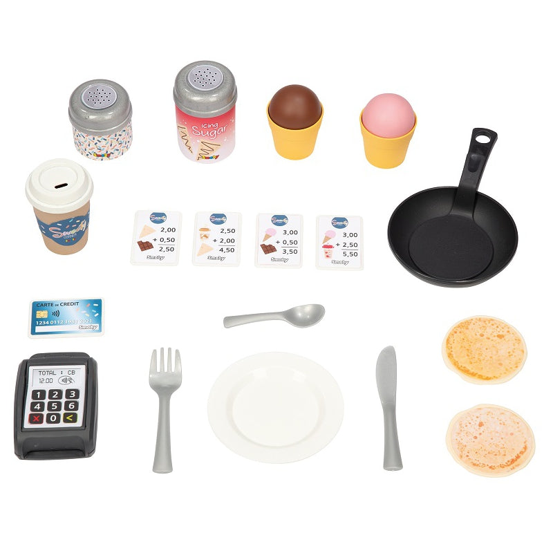 - w zestawie znajdziemy 18 akcesoriów - naleśniki, lody, posypki, sztućce, karty kredytowe, bilony,