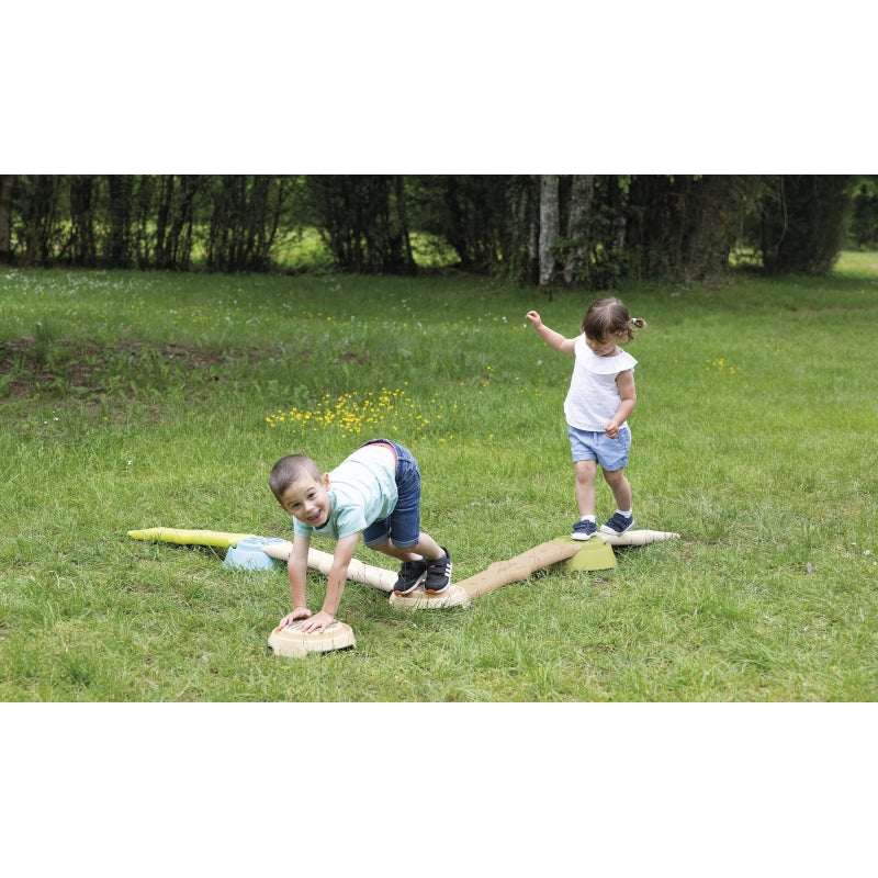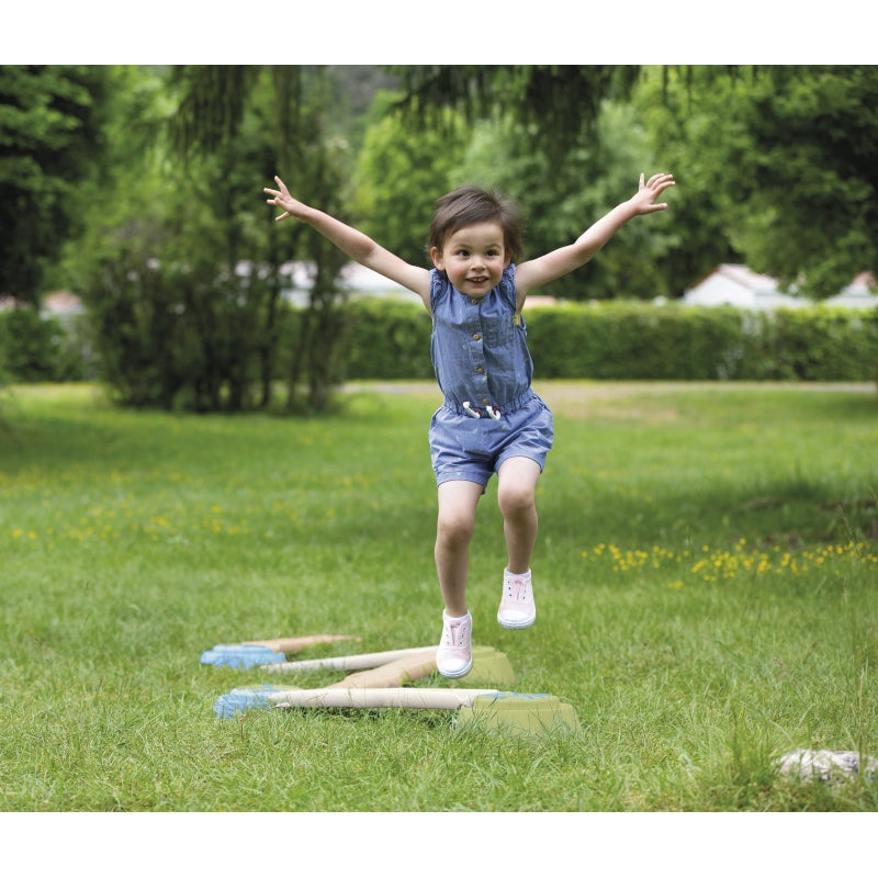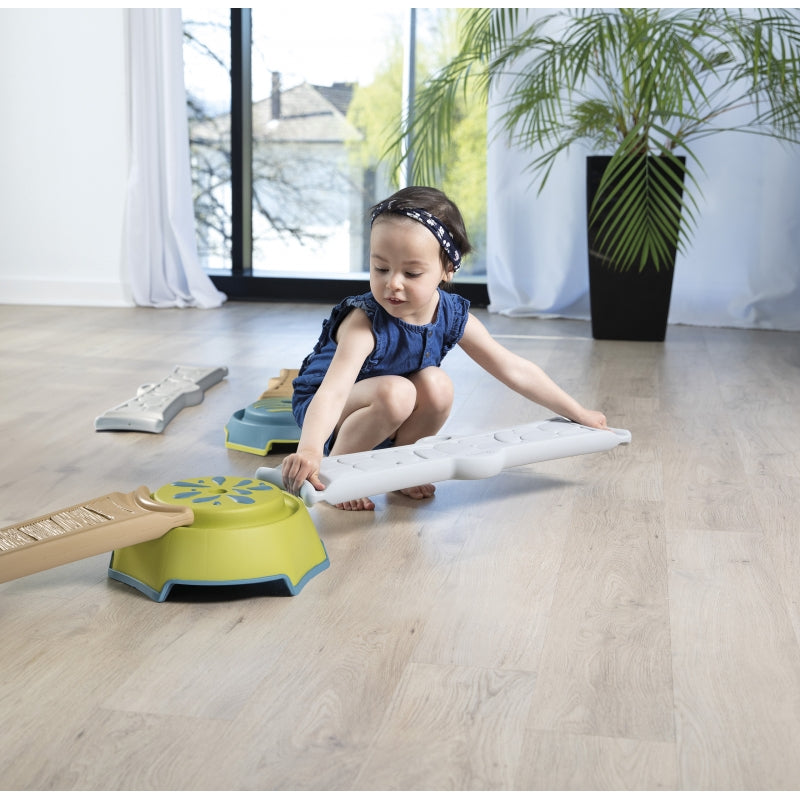 De Smoby Balance Track is een unieke sensorische evenwichtsbaan, speciaal ontworpen voor kinderen vanaf 2 jaar. Dankzij deze techniek kunnen peuters hun motorische coördinatie ontwikkelen, hun evenwicht oefenen en allerlei sensorische prikkels ervaren. Spelen op de evenwichtsbalk is niet alleen een geweldige manier om de motoriek te trainen, maar het is ook nog eens hartstikke leuk, zowel thuis als buitenshuis. De set bestaat uit vier lange (70 cm) panelen met verschillende texturen en vier voetstukken om ze te monteren. Doordat de elementen naar eigen wens kunnen worden geconfigureerd, kunt u een parcours tot 3,5 meter lang creëren, aangepast aan de vaardigheden van het kind. Het is de moeite waard om de route op blote voeten te lopen. Dit versterkt de zintuiglijke ervaring en heeft een positief effect op de ontwikkeling van het zenuwstelsel. Dankzij de weerbestendige ANTI-UV-coating is de evenwichtsbalk zowel thuis als in de tuin een prima hulpmiddel. Het product wordt vervaardigd met behulp van het blaasvormprocédé, waarbij de panelen uit één stuk bestaan. Dit garandeert hun duurzaamheid en lichtheid en maakt bovendien extra montage overbodig.