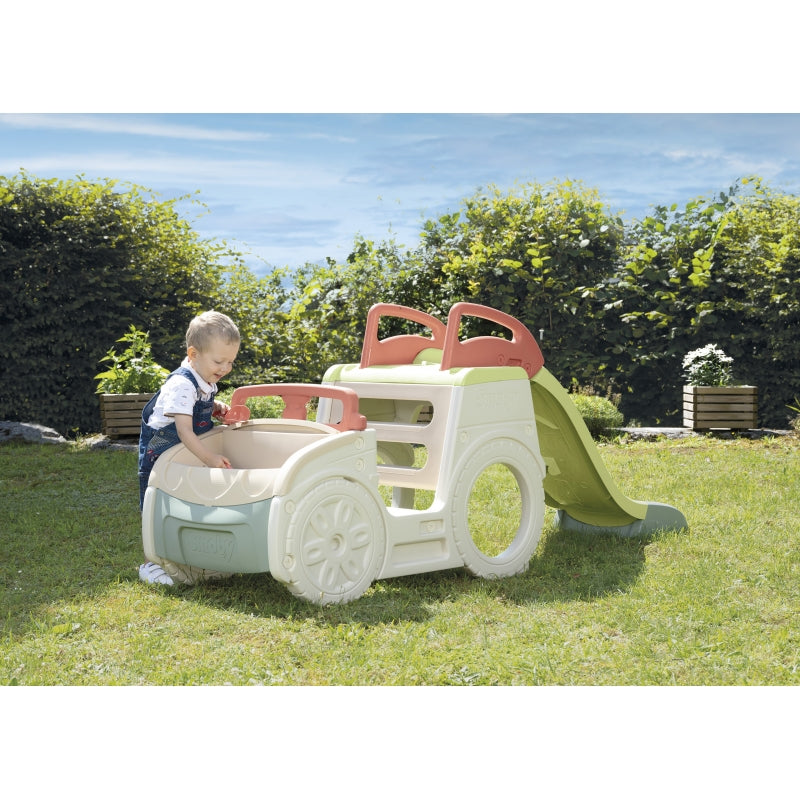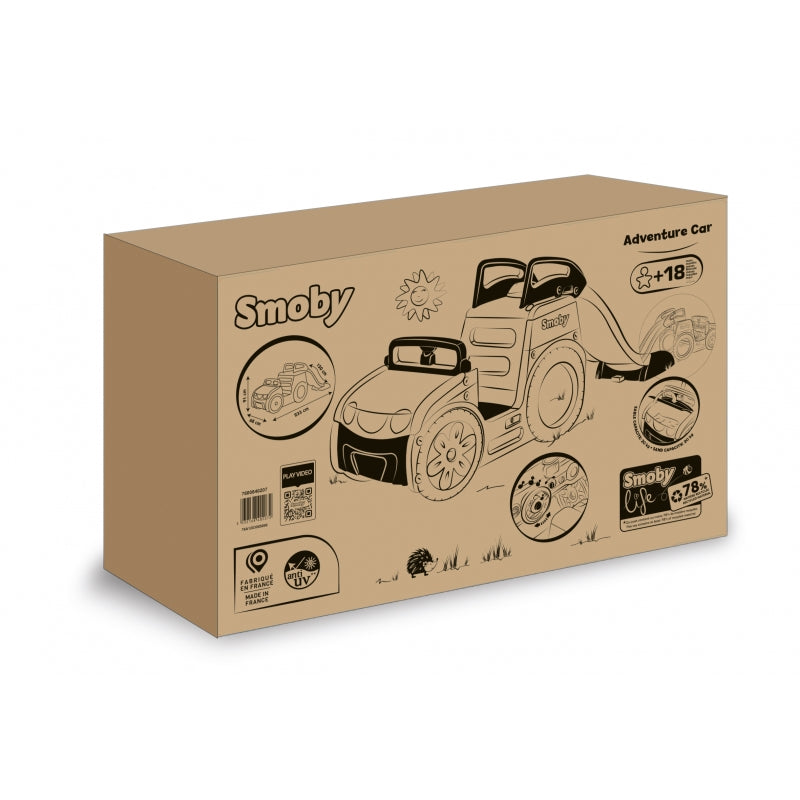 Smoby Samochód Przygód 3w1 to wyjątkowa zabawka ogrodowa, która łączy aktywną zabawę, kreatywność i rozwój fizyczny. Dzięki wytrzymałemu materiałowi i powłoce ANTI-UV, zabawka będzie cieszyć dzieci przez długi czas. Idealna do ogrodu, zapewniająca rozrywkę przez cały dzień. Samochód Przygód to idealna przestrzeń do zabawy na świeżym powietrzu dla najmłodszych! Ten wyjątkowy plac zabaw, inspirowany samochodem terenowym, przenosi dzieci w świat ekscytujących podróży i przygód.