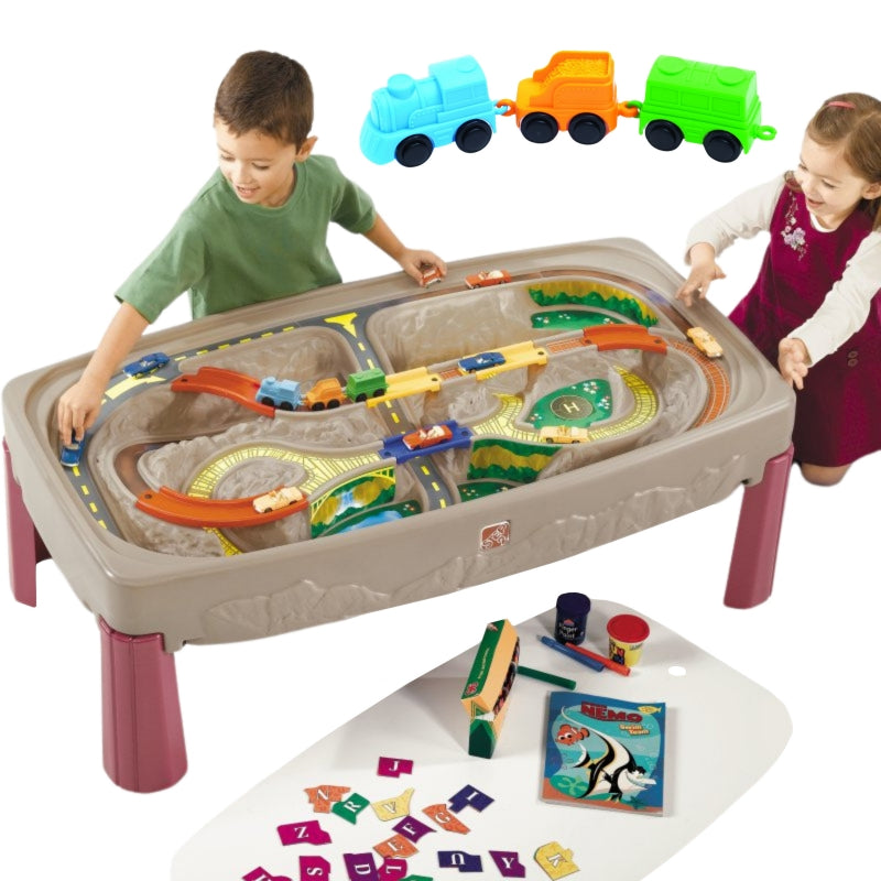 Stół na samochodziki kanion z blatem to duży rozbudowany stół renomowanej amerykańskiej firmy STEP2 to świetna zabawka, stwarzająca dziecku wiele możliwości do zabawy resorakami i innymi pojazdami. Posiada wielopoziomowy, uformowany tor i nieusuwalne mostki, dzięki czemu już nigdy nie będziesz musiał resetować toru dla swoich dzieci! Pomoże to małym konduktorom rozwinąć ich umiejętności społeczne, gdy będą dzielić pociągi i tory z towarzyszami zabaw i rodzeństwem. Gładka pokrywa przekształca go w stół do rękodzieła i przekąsek. Charakterystyka: