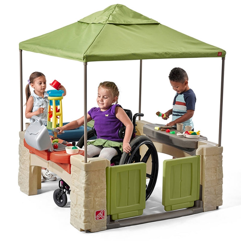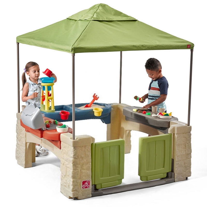 Patio z Baldachimem i grillem amerykańskiego producenta zabawek Step2 to świetny dodatek do przydomowego placu zabaw. Dzieci mogą organizować własne przyjęcia dla swoich znajomych. Realistyczne i atrakcyjne wzornictwo idealnie wkomponuje się do każdego ogrodu. Mali kucharze będą mogli godzinami bawić się w kuchni, udając że przygotowują i grillując swoje ulubione potrawy, zupełnie jak mama i tata.