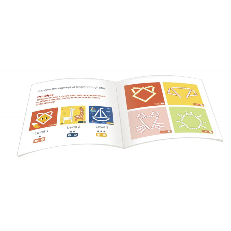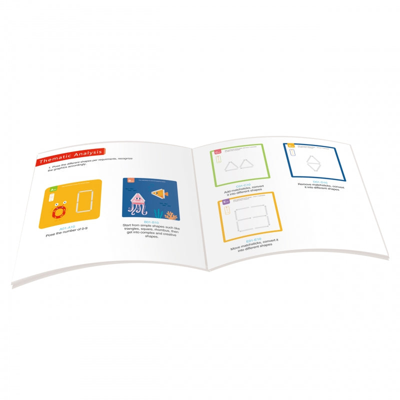 - W zestawie 58 elementów: książeczka z różnymi wzorami, pudełko oraz zapałki magnetyczne,