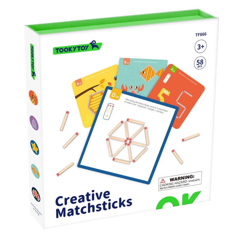 "Kreatywne Zapałki" od marki Tooky Toy to znakomita gra edukacyjna, która gwarantuje godziny wciągającej zabawy dla dzieci i dorosłych. Dzięki różnorodnym wzorom i możliwościom układania, ta gra rozwija nie tylko wyobraźnię, ale także zdolności logicznego myślenia. Gra jest idealna do zabawy zarówno w pojedynkę, jak i w grupie, co sprawia, że staje się doskonałym narzędziem do wspólnego spędzania czasu. Gra polega na ułożeniu zapałek na załączonych w zestawie planszach, według wzorów lub samodzielnie, według własnego pomysłu. Gra oferuje różne poziomy trudności, od łatwych zadań dla najmłodszych graczy po bardziej skomplikowane łamigłówki, które wymagają dużej koncentracji i logicznego myślenia. Poziomy trudności są oznaczone różnymi kolorami na kartach. Gra zawiera karty z 50 różnymi wzorami oraz broszurę z instrukcjami i różnymi sposobami gry.