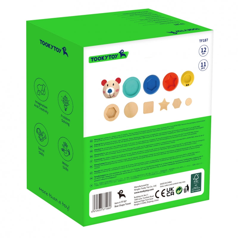 TOOKY TOY Drewniana Układanka Piramidka Kształty Miś 11 el.