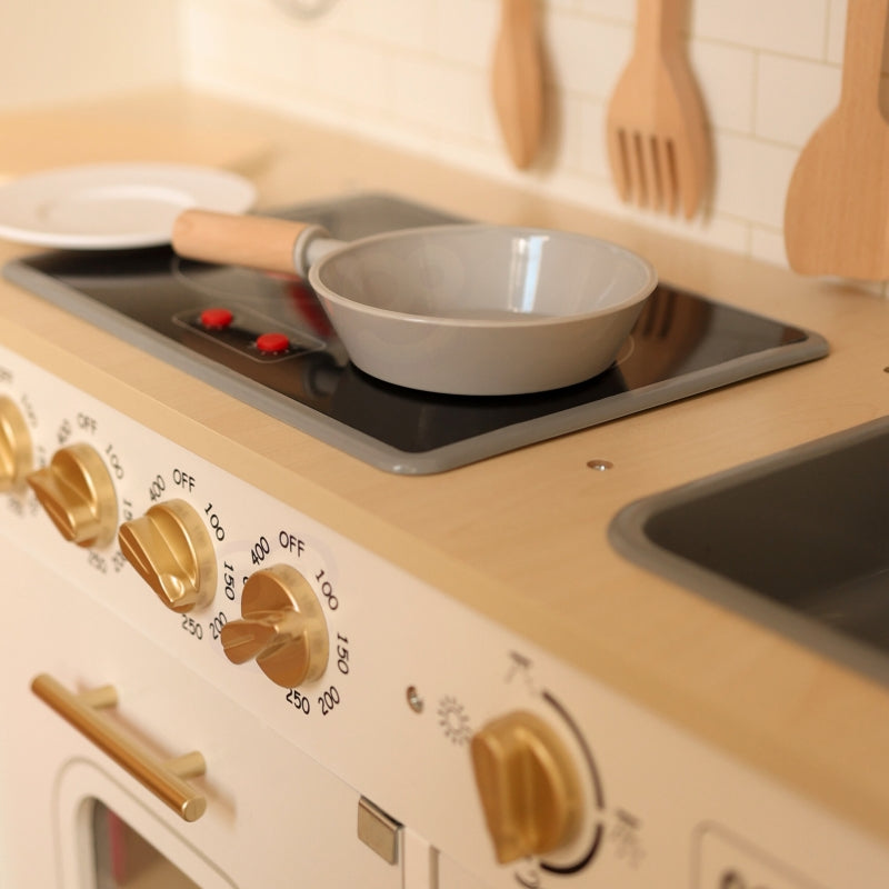 Drewniana nowoczesna kuchnia od Tooky Toy to ponadczasowa i ulubiona zabawka dla dzieci powyżej 3 roku życia, która przeniesie je w świat gotowania. Kuchnia kompletnie wyposażona w akcesoria i urządzenia, stymulujące prawdziwą kuchnię, co sprawia, że idealnie nadaje się do zabawy w odgrywanie ról, pozwalając dzieciom na naśladowanie codziennego życia dorosłych. Zabawa drewnianą kuchnią od Tooky Toy nie tylko dostarcza radości i rozrywki, ale także rozwija wyobraźnię, koordynację ruchową i umiejętności społeczne dziecka. To kompleksowe doświadczenie, które połączone jest z edukacją i kreatywnością, stymulując rozwój maluchów na wielu płaszczyznach. Drewniana konstrukcja kuchni gwarantuje trwałość i estetykę, a dodatkowo zapewnia realistyczne wrażenia podczas zabawy.