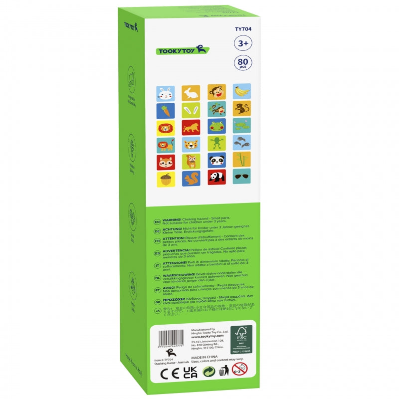 TOOKY TOY Jenga Zwierzęta to gra zręcznościowa dla dzieci od 3 roku życia. Wymaga od twojej pociechy skupienia i logicznego myślenia. Zestaw składa się z 82 elementów. Jest wiele możliwości układania dzięki czemu zapewni długie godziny zabawy. Produkt ekologiczny w 100% bezpieczny dla środowiska oraz twojego malucha. Elementy zostały wykonane z myślą o małych rączkach dziecka. Zestaw przyciąga wzrok żywymi kolorami oraz ilustracjami zwierząt. Klocki charakteryzują się solidnym wykonaniem. Gra Jenga, mimo swojej prostoty, na pewno dostarczy fantastycznych wrażeń!