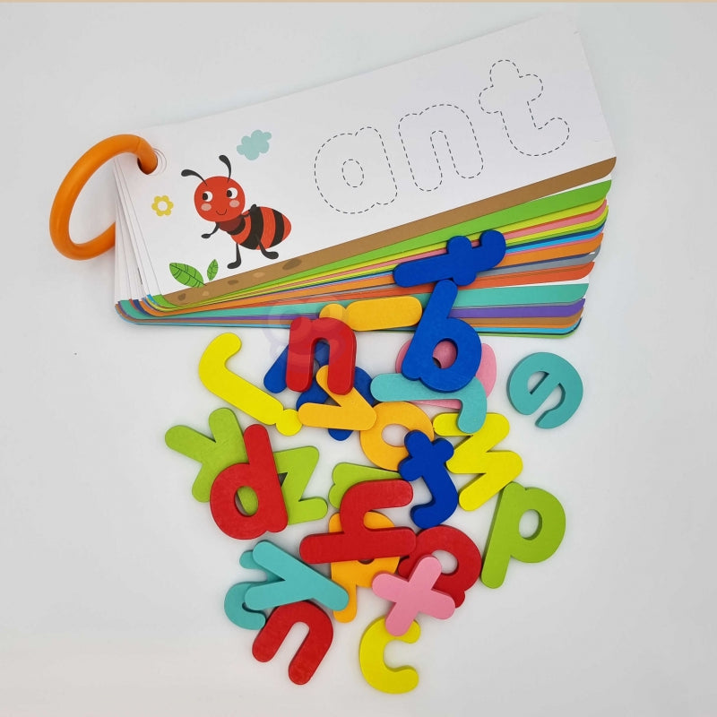 Karty z ilustracjami zwierzątek z klockami do dopasowania w kształcie liter od marki Tooky Toy to świetny sposób, aby pomóc dzieciom w rozpoznawaniu liter alfabetu i rozwijaniu wczesnego słownictwa. Każda karta ma rysunek zwierzęcia i kontury imienia zwierzęcia, w którym dzieci muszą ułożyć odpowiednie litery do umieszczenia w konturze. Sprzedawane z przyjazną dla dzieci obręczą, aby złożyć wszystkie karty razem po zakończeniu.