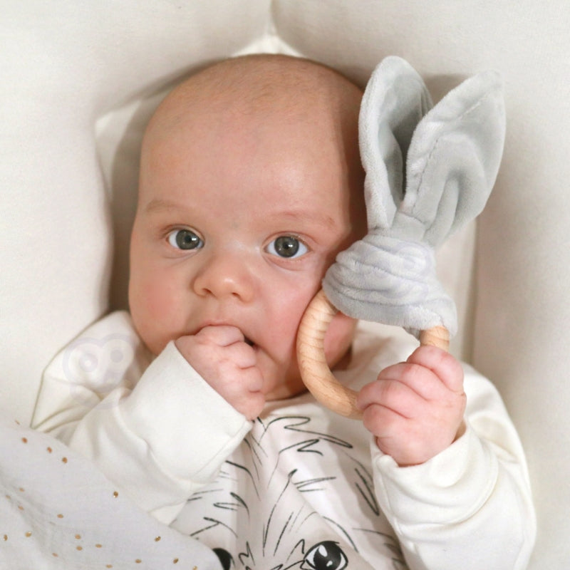 - Houten milieuvriendelijke konijnenbijtring. Deze bijtring is gemaakt van natuurlijk hout en heeft schattige, lange konijnenoren, zorgvuldig genaaid van biologisch katoen, perfect om vast te houden en mee te spelen. Het verzacht doorkomende tandjes, waardoor kinderen kunnen spelen en kauwen tijdens het doorkomen van de tandjes, en helpt het gevoelige tandvlees van je baby te verzachten. Bijtringen helpen kinderen door deze moeilijke periode heen en zijn aangepast aan hun kleine mondjes en handjes.