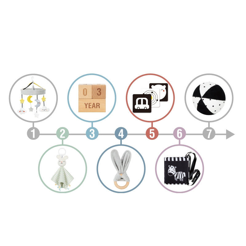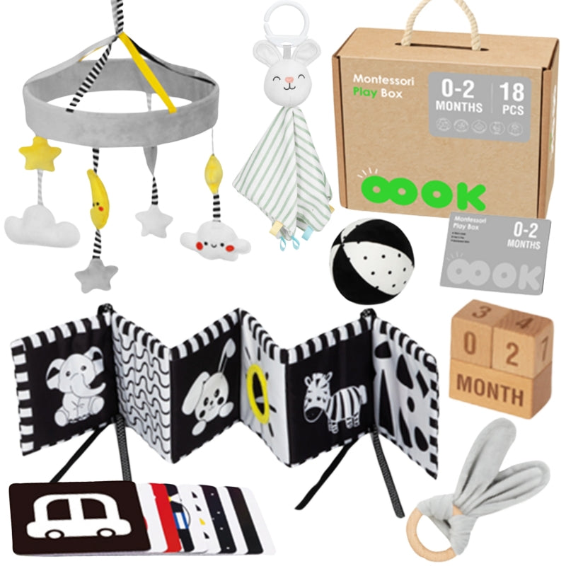 De Tooky Toy Speelgoed Box is ontworpen voor baby's van 0 tot 2 maanden oud. Hij bevat 6 Montessori sensorische en educatieve speeltjes die de gezonde psychomotorische ontwikkeling van je kind ondersteunen en hun zintuigen stimuleren: zicht, tastzin en gehoor. Het ontwikkelt ook logisch denken en hand-oogcoördinatie. Er is ook een gedetailleerde handleiding voor ouders, zodat je kunt leren wanneer je het speeltje aan je baby kunt laten zien en hoe je ermee kunt spelen. De Tooky Toy Educational Box is een perfect cadeau voor een baby. De set bevat een handleiding met informatie over de inhoud van de doos, instructies voor het gebruik van het speeltje en handige tips.