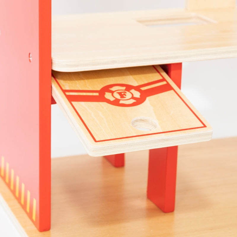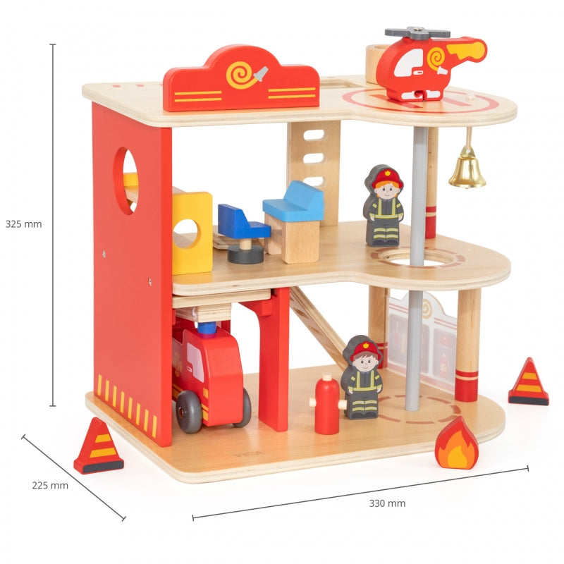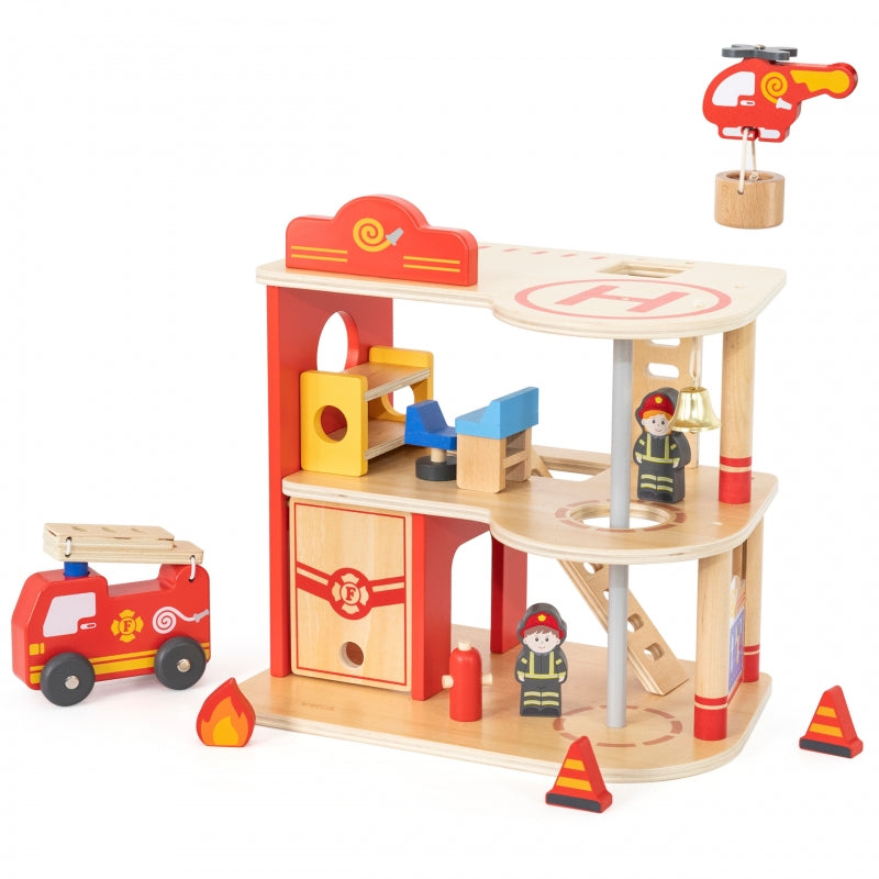 ✔️ Dla dzieci od 3 roku życia✔️ Wykonany z wysokiej jakości drewna✔️ Przestronny parter z miejscem na wóz strażacki i przechowywanie niezbędnych narzędzi✔️ Drugie piętro z przytulną strefą odpoczynku dla strażaków, działającym dzwonkiem i zjeżdżalnią umożliwiającą szybką reakcję na alarmy✔️ Trzecie piętro z lądowiskiem dla helikoptera strażackiego, zapewniające możliwość akcji powietrznych