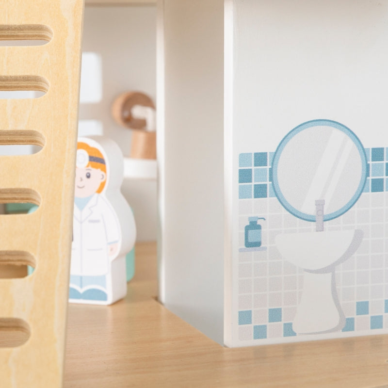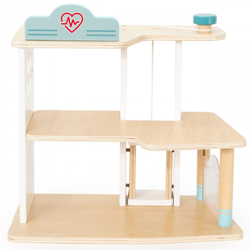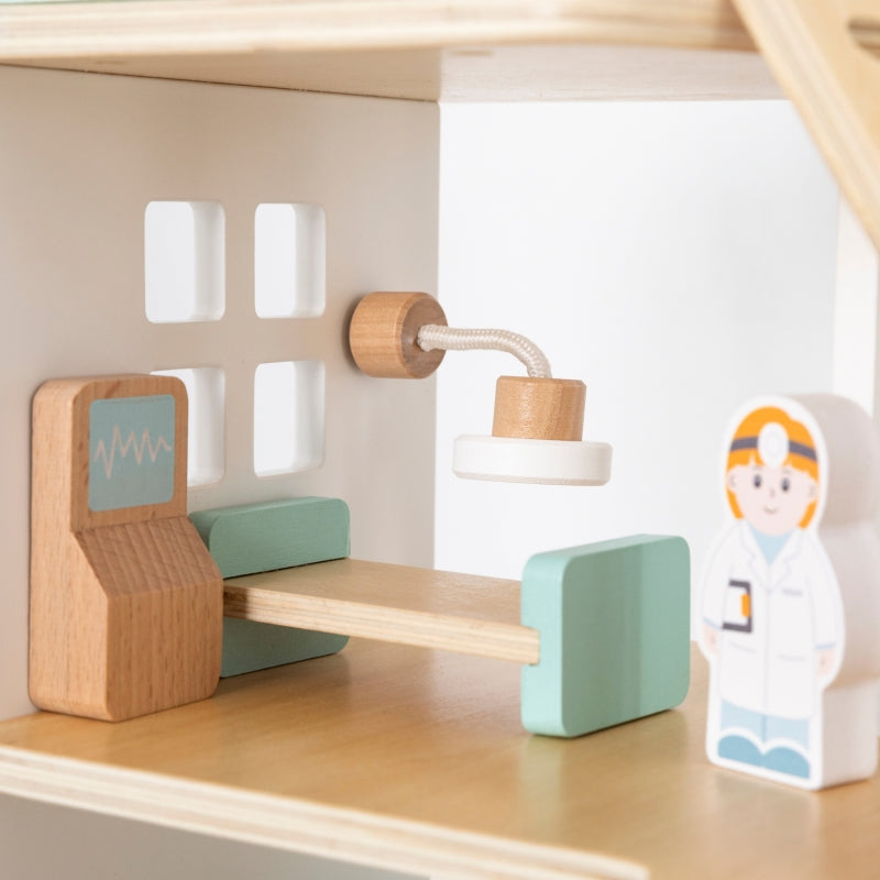 ✔️ Dla dzieci od 3 roku życia✔️ Wykonany z wysokiej jakości drewna✔️ Parter w pełni wyposażony w tomograf komputerowy, stację ultrasonograficzną i magazyn leków✔️ Drugie piętro z szczegółowo odwzorowaną salą operacyjną✔️ Trzecie piętro z lądowiskiem dla helikoptera ratunkowego