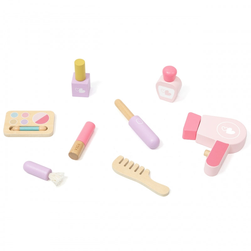 ✔️Drewniana paletka do makijażu z pędzelkiem✔️Szminka w eleganckim opakowaniu ✔️Drewniane lakiery do paznokci ✔️Flakonik perfum w różowym odcieniu ✔️Grzebień do włosów✔️Miękki pędzel do pudru✔️Suszarka do włosów z wymiennymi końcówkami