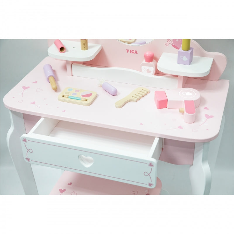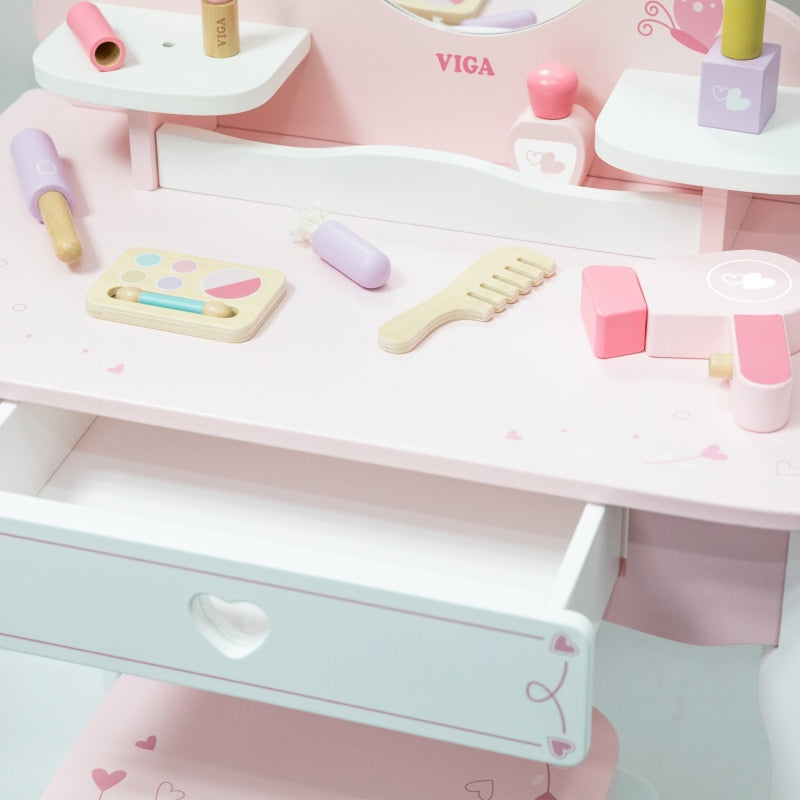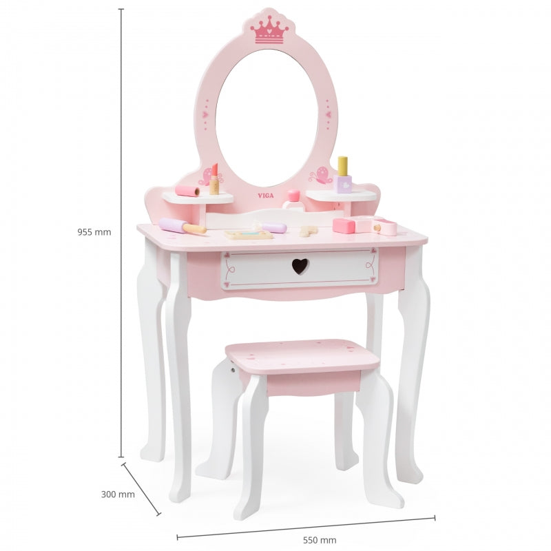 VIGA Duża Toaletka Drewniana Biało-Różowa z Lustrem i Krzesełkiem