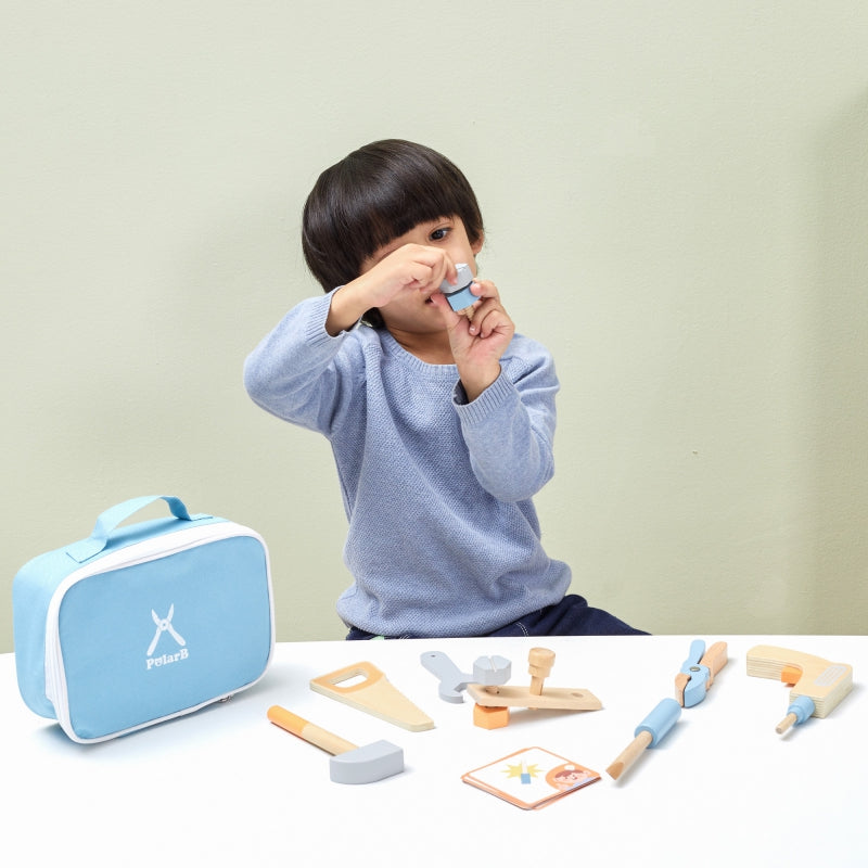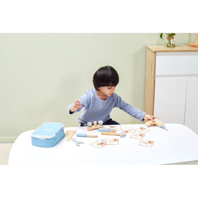 De Houten Gereedschapsset is een geweldig cadeau-idee voor een kleine doe-het-zelver. Vanaf nu heeft elke peuter alles wat hij of zij nodig heeft voor reparaties, schroeven, spijkeren en allerlei soorten renovatiewerkzaamheden. Het staat garant voor veel plezier. Het product verbetert de cognitieve vaardigheden. Het kind leert over gereedschap en het gebruik ervan, ontwikkelt zijn of haar verbeelding en verbetert de handvaardigheid.