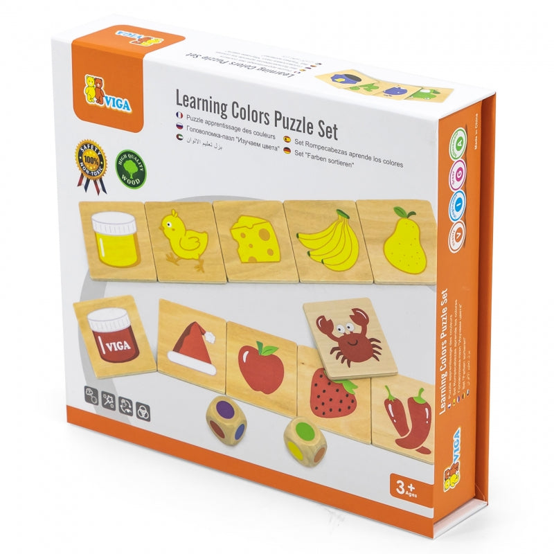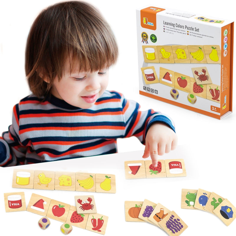 Drewniana układanka, dzięki której Maluszek nauczy się rozpoznawać kolory. Zabawa polega na rozróżnieniu i dopasowaniu obrazków do odpowiednich kolorów. Dzięki obrazkom dziecko poznaje nie tylko kolory i uczy się je nazywać, ale również dowiaduje się jakie przedmioty, rośliny czy zwierzęta mają właśnie dany kolor. W dołączonej instrukcji propozycje wariantów dla jednej osoby jak i kilku osób oraz w zróżnicowanym poziomie trudności.