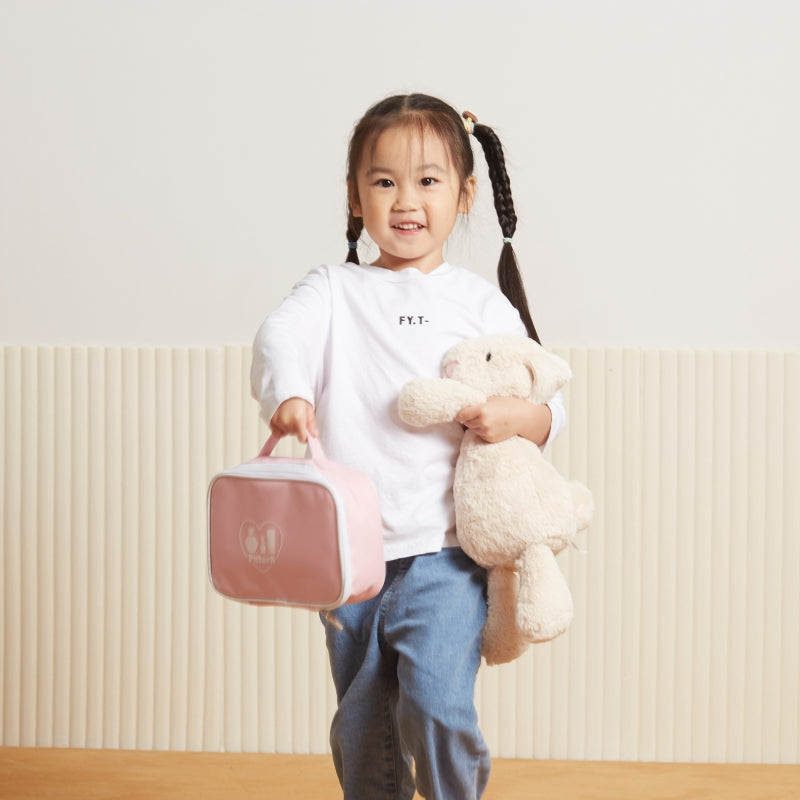 - Wszystko zapakowane w materiałową różową kosmetyczkę.