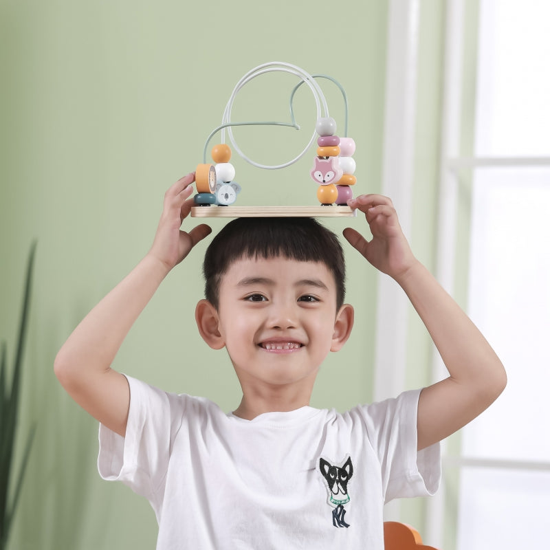 Door de kralen en blokjes langs de gebogen metalen lussen te bewegen, oefenen kinderen doelgerichte handbewegingen en ontwikkelen ze hun oog-handcoördinatie, geduld en logisch denken. De kleurrijke kralen en schattige dierenfiguren zorgen daarbij voor extra speelplezier.