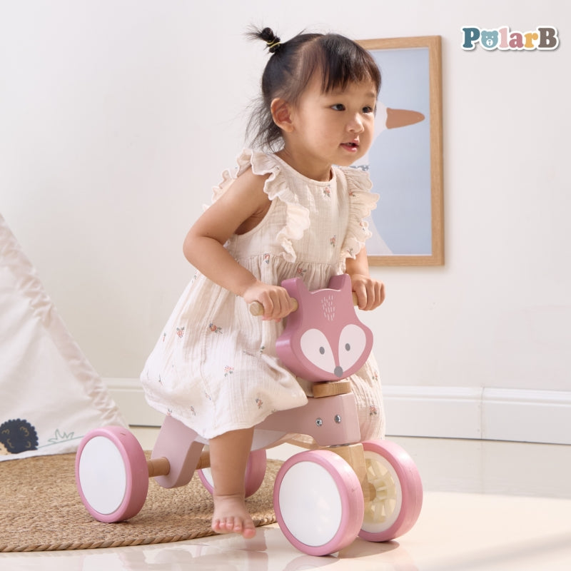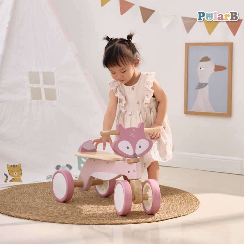 VIGA PolarB Houten Vos Loopauto met Zachte Wielen - Roze