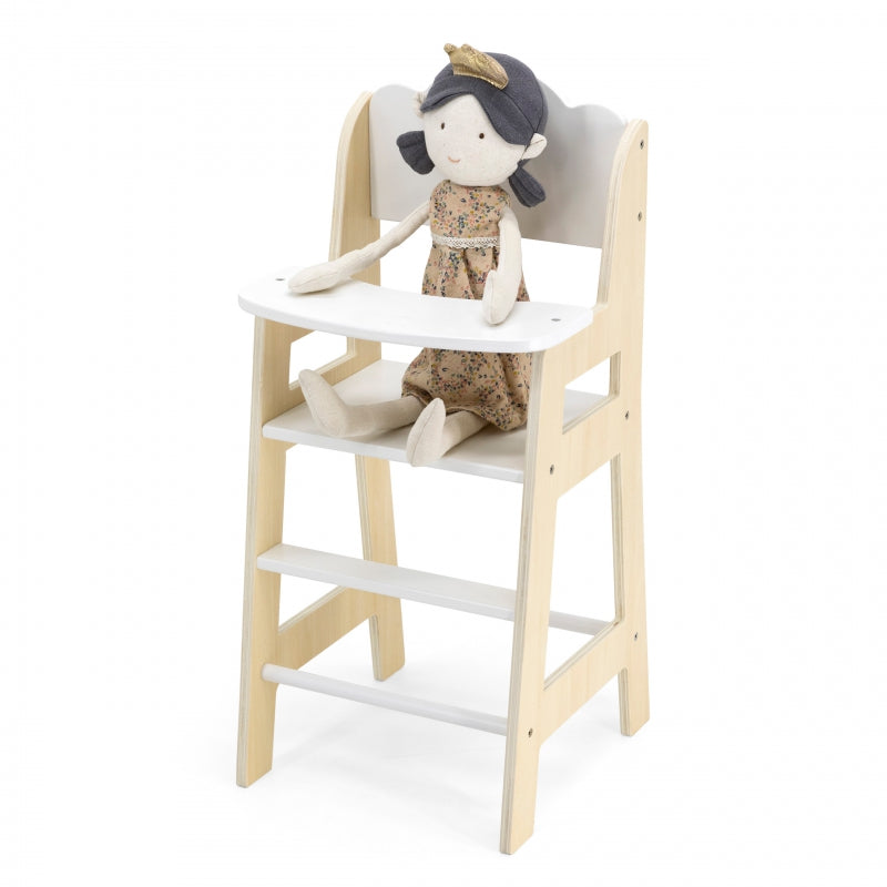 Drewniane krzesełko do karmienia dla lalek marki VIGA. Posadź swoją lalkę w tym uroczym krzesełku alby zjadła posiłek lub przekąskę. Zabawka rozbudzi kreatywność i ciekawość dziecka zapewniając długie godziny fantastycznej zabawy. Pasuje do lalek o wysokości do 38 cm. Zabawka przeznaczona dla dzieci od 3-go roku życia.