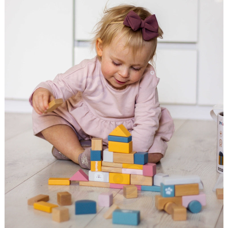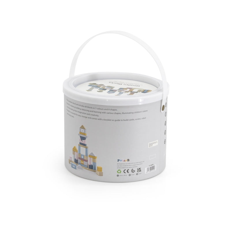 VIGA PolarB Zestaw drewnianych klocków w wiaderku - 60 elementów