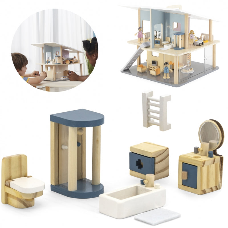 VIGA PolarB Zestaw Mebelków do Domku dla Lalek Łazienka
