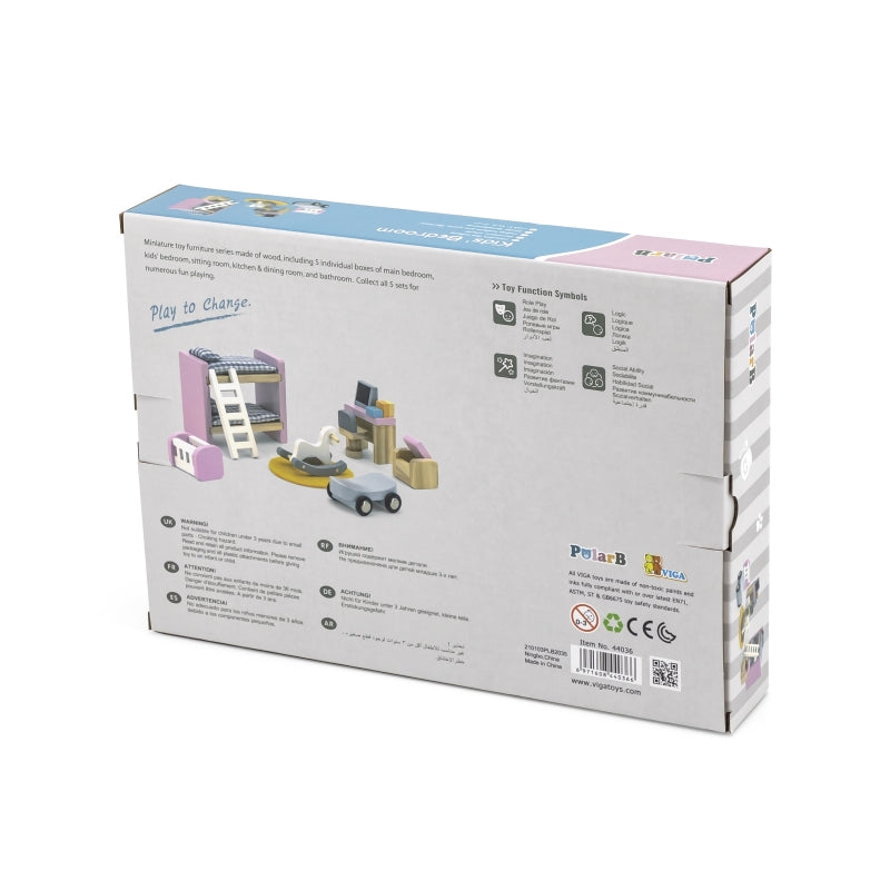 VIGA PolarB Zestaw Mebelków do Domku dla Lalek Pokój Dziecięcy