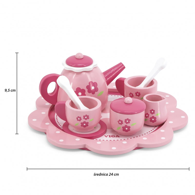 - w skład zestawu wchodzi 12 elementów - imbryk na herbatę, dzbanuszek, cukiernica, filiżanki, spodeczki, łyżeczki i taca,