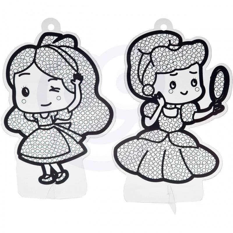 - 12 naklejek w rozmiarach 6 - 7 cm na których nadrukowany jest wzór. Wzory pokryte są specjalną warstwą klejącą, która umożliwia klejenie diamencików,