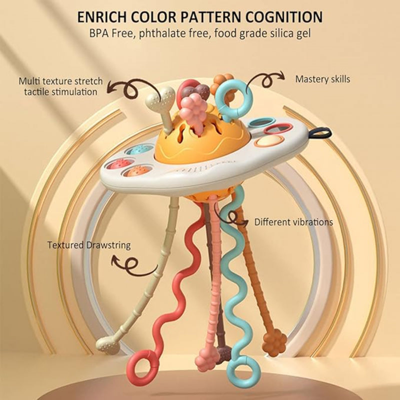 De WOOPIE BABY Sensorische UFO "Przeciąganka" is veel meer dan een speeltje – het is een multifunctioneel hulpmiddel voor de gezonde ontwikkeling van jouw baby. Geïnspireerd door de Montessori-methode, stimuleert deze kleurrijke bijtring alle zintuigen en ondersteunt motoriek, tastzin en coördinatie, terwijl het ook verzachting biedt bij het zogen.