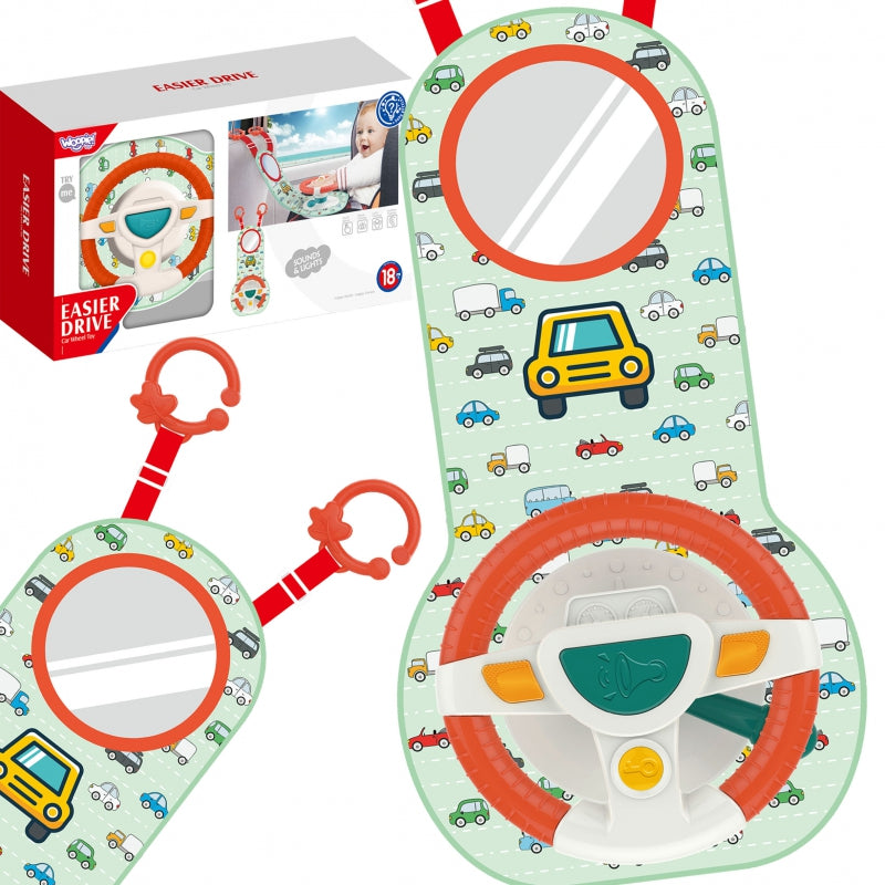 Interaktywna Kierownica do Samochodu od marki WOOPIE zapewni Twojemu dziecku niekończącą zabawę podczas długich podróży. Dziecko może naśladować zachowania rodzica, odgrywając rolę kierowcy. Dziecko może używać klaksonu, kierunkowskazów, kluczyka do uruchomienia silnika oraz patrzeć w plastikowe lusterko. Wszystkie elementy kierownicy wydają z siebie dźwięki i świecą, dodając uroku do zabawy. Dzieci uwielbiają naśladować dorosłych, a ta zabawka pozwala im to robić w bezpieczny i kontrolowany sposób. Wszystkie elementy zabawki są solidnie przymocowane, nie ma ostrych krawędzi, a kierownica jest łatwa do przymocowania do zagłówka przedniego siedzenia.